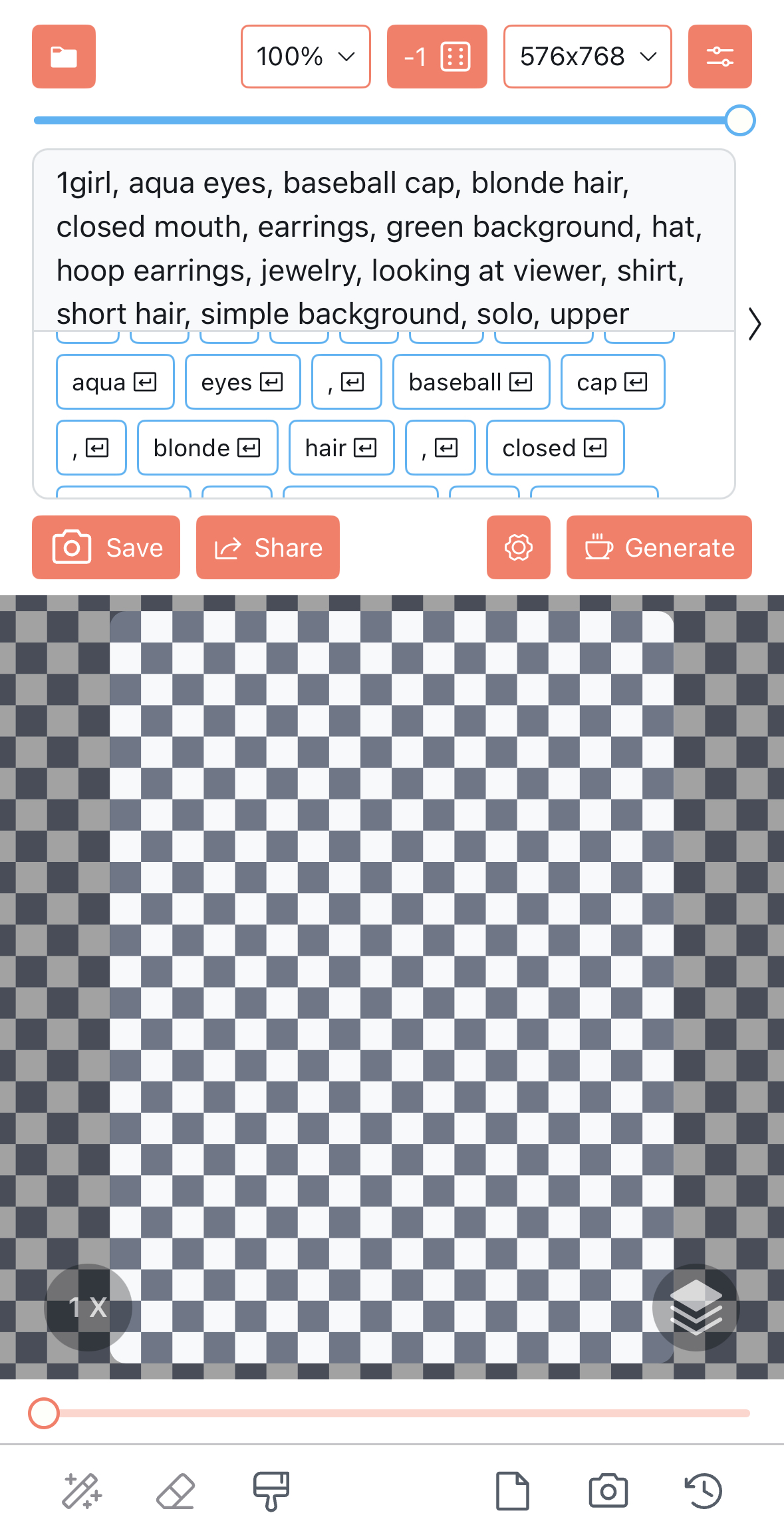 「Generate」ボタンをタップすると、画像が生成される。