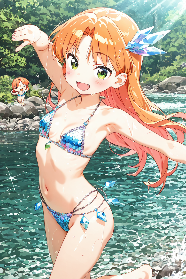 , 1 girl, kawaii detailed face, golden fur bikini, , pointy breasts, cute hip , ,