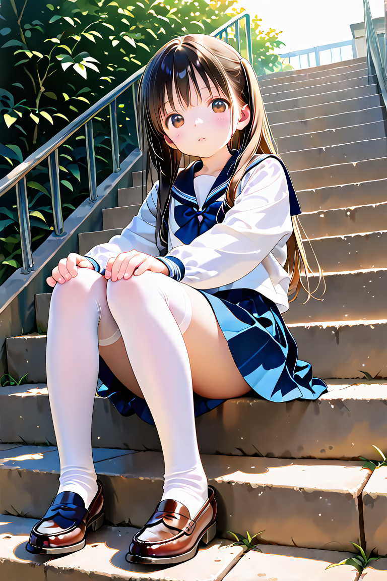 1 little girl, moe detailed face, semi‑realistic ultra super detailed gorgeous sailor school uniform ,