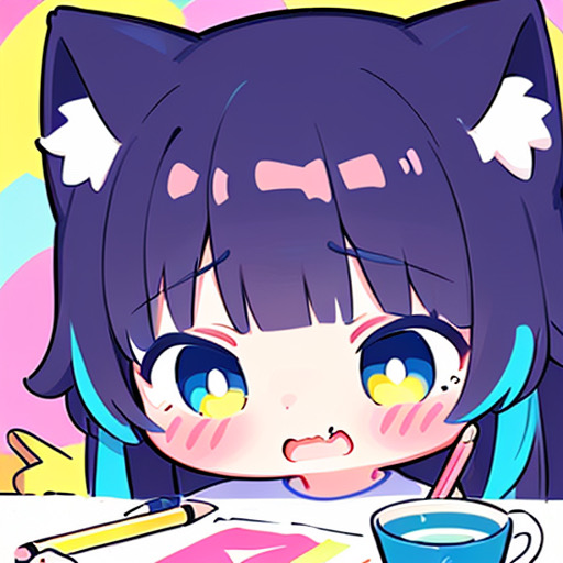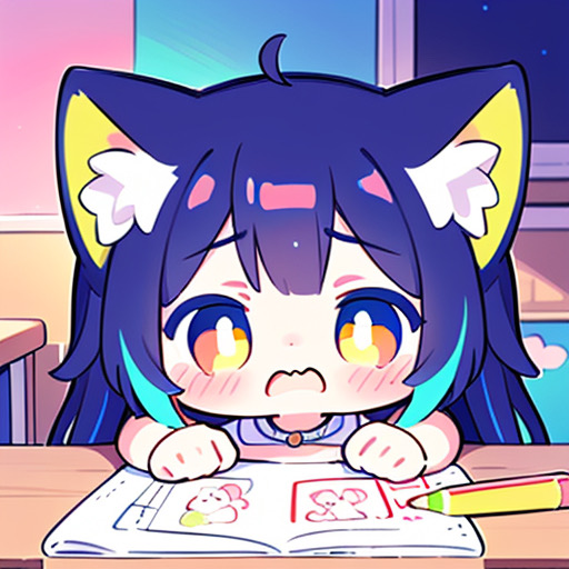 1girl, catgirl, girl Drawing, pencil sketch, face laughter, tumbled cup on desk, bright room,