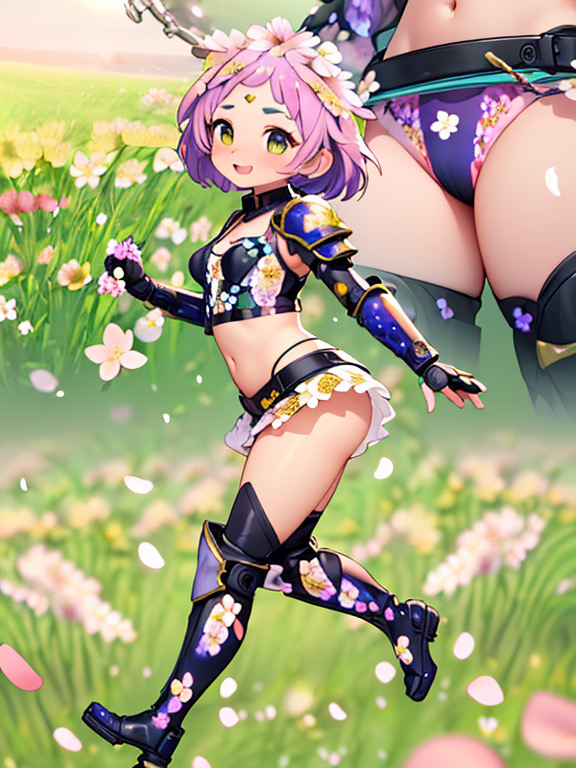 ( (((no hair,simple hair))), ((she is in a flower blossom stetch to the edge of screen)), (blossoms on head, blossoms with body:1.2), (petals and blossoms_print_on_head:1.35), ((detailed flowery meadow with petals and blossoms on head):1.2), (flowers filled the screen), ):0.5