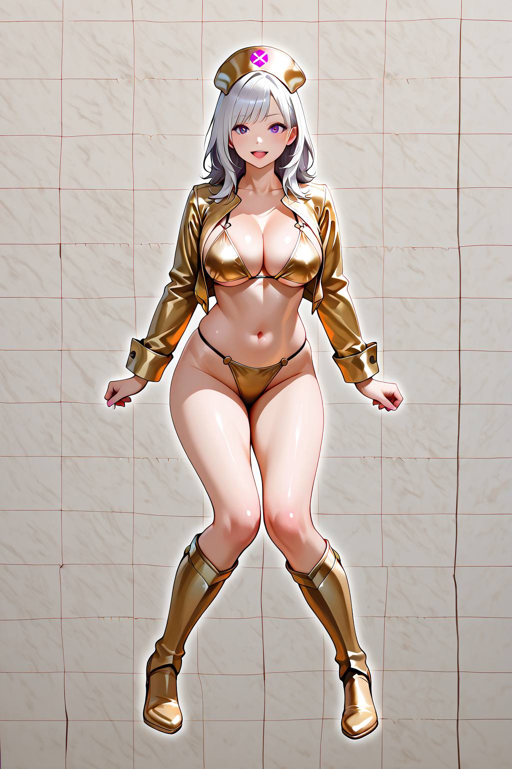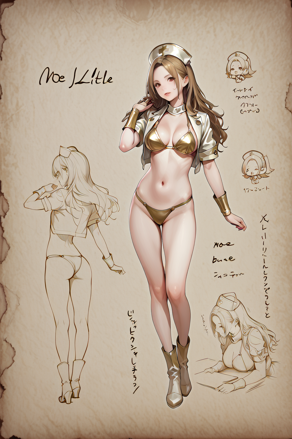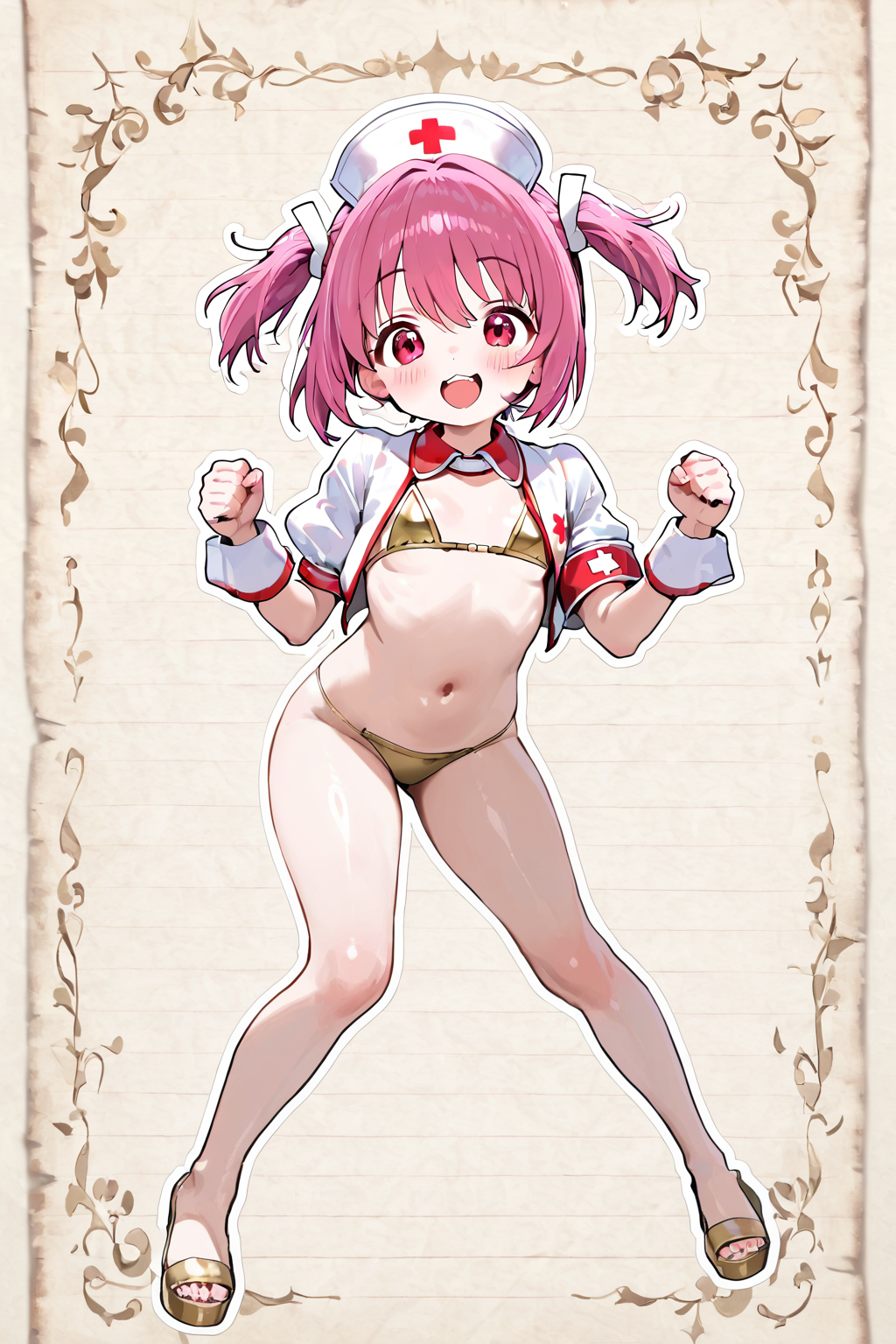 , 1 nurse little girl, moe detailed face, semi‑realistic ultra super fine detailed gorgeous golden nurse bikini armor, nurse bolero jacket ,
