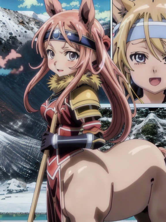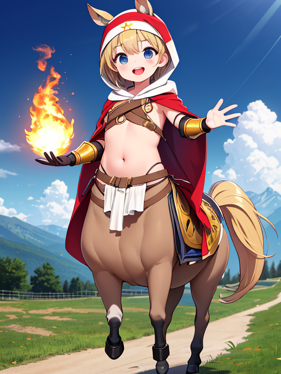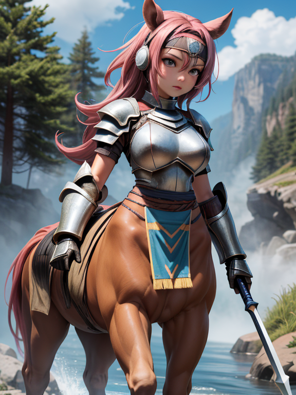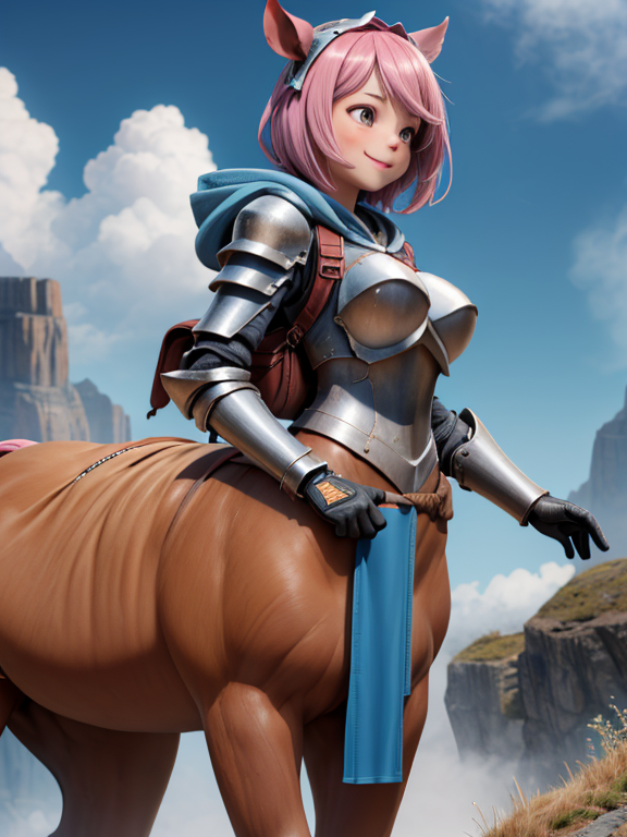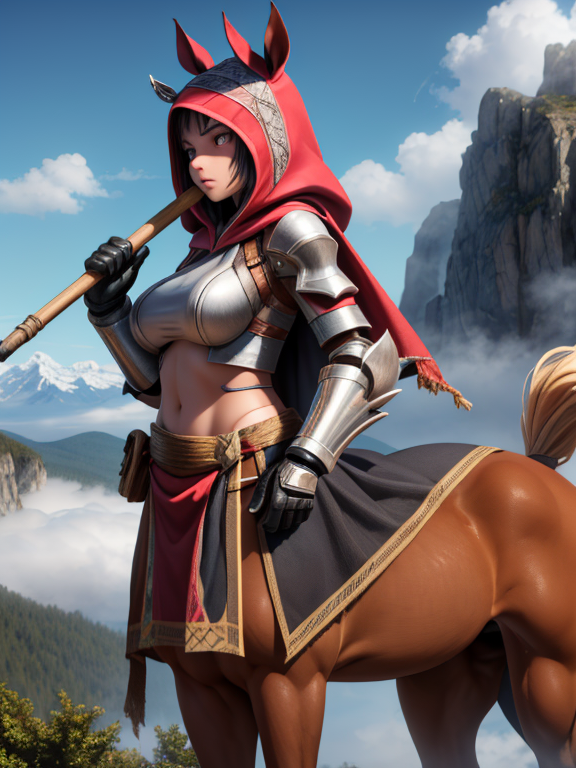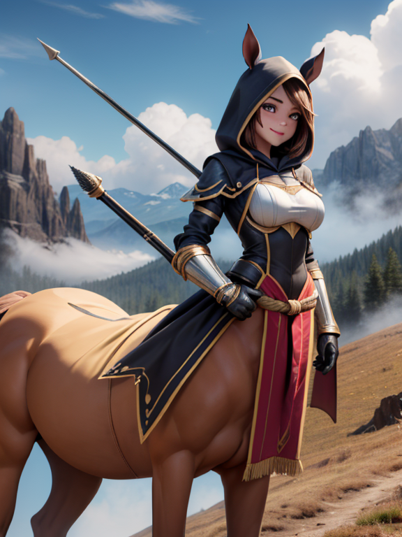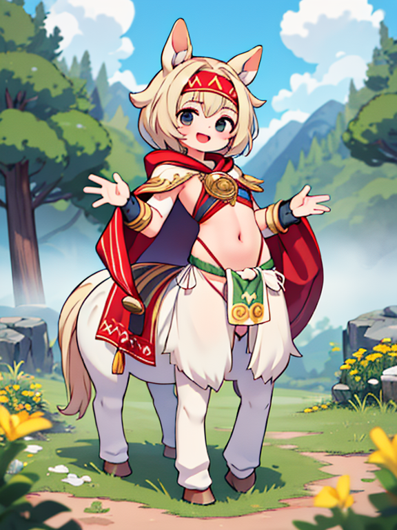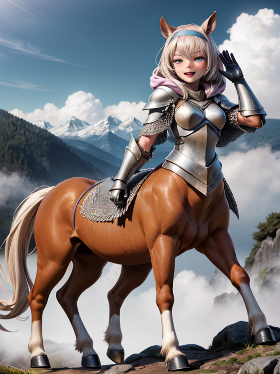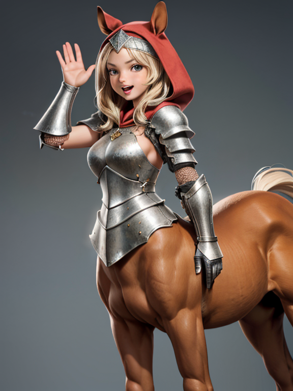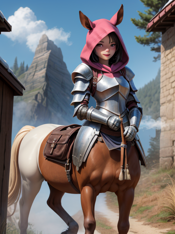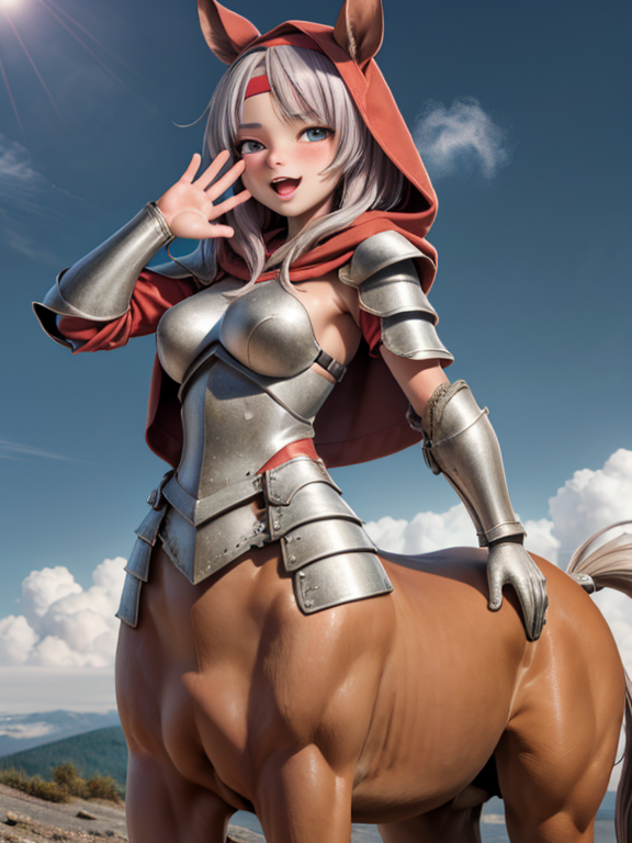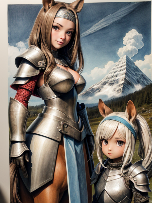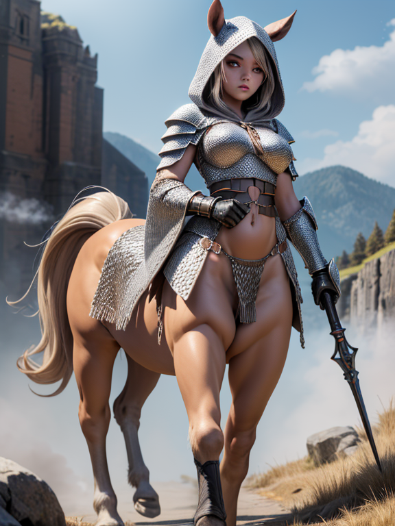 (2 girls Warrior Centaurs ), ( horse ear, no ear ), armor with hood cloak , ( loincloth:1.4,), gauntlets, headband, metal gloves, backpacks , Centaurs walking side by side, face happy, face viewer,