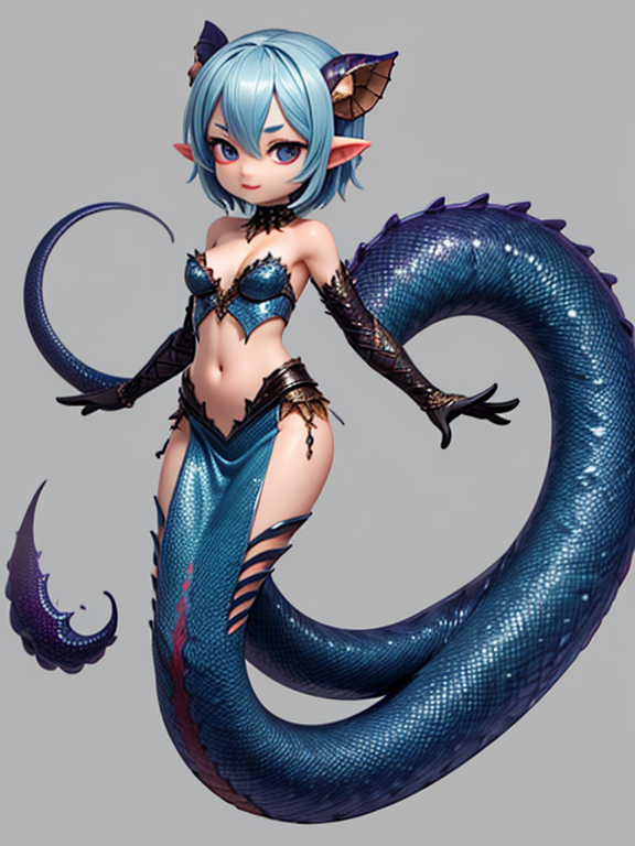 ▼ Lamia のLoRAを試してみたところ、model 依存が大きいようで、足(尻尾)を二本、描いてしまう。